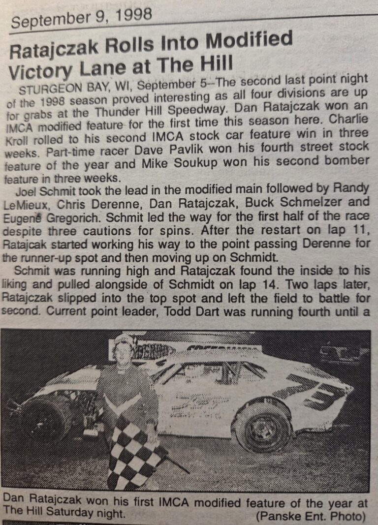 RATAJCZAK ROLLS INTO MODIFIED VICTORY LANE AT THE HILL (reprinted from the September 9, 1998 […]