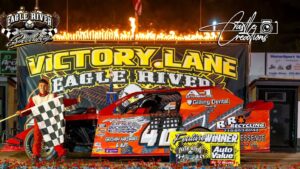 and went on to win the USRA late model feature at Eagle River Speedway Tuesday.