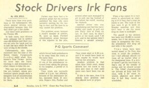 (motorsports editorial piece from Jim Zima reprinted from the Green Bay Press Gazette June 2, 1975)