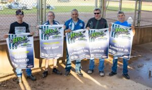 The 2025 Hall of Fame Class for The Hill Raceway (left to right) Gregg Siebold, Jeff May, Randy LeMieux Sr., Rick LeMieux and Clyde LeMieux Jr. (Bryan Wodack photo)