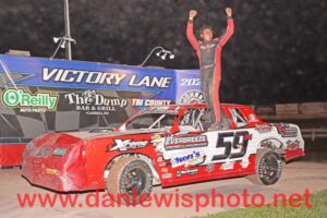 Suamico’s Jamison MacDonald scored his first career IMCA stock car feature win at 141 Speedway in Francis Creek July 27. (danlewisphoto.net)