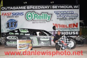 (Seymour, Wisconsin) June 6 – Hometown driver Mike Mullen gave the locals plenty to cheer about at Outagamie Speedway in Seymour Friday.