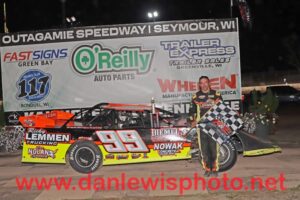 (SEYMOUR, WI) JUNE 27 – 88 cars and stars across four divisions rolled into the pits at Outagamie Speedway. With a double payday on the line for late models courtesy of Seubert Calf Ranches there was sure to be an electric atmosphere for the Thunder at the Fair.