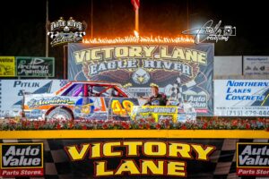 (EAGLE RIVER, WI) August 30, 2025 – Montello’s Jeff Richards led every lap, and went on to capture the grand national feature win at Eagle River Speedway Saturday.
