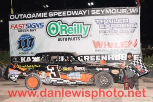 (SEYMOUR, WI) JULY 4 – As the calendar flipped from June to July temperatures rose and so did the excitement at Outagamie Speedway.  With 120 cars signed in to the pits the fireworks on the track were certain to be more exciting than any in the sky as drivers and fans alike gathered to celebrate our freedoms dirt track style.